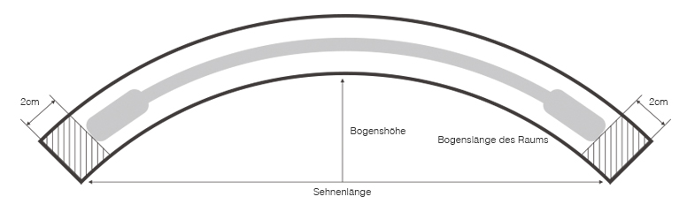 2cm an jedem Ende des Vorhangpaneels (gebogenes Gleis) schaffen.